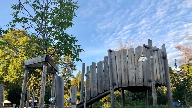 Die Auswahl der Spielgeräte richtet den Fokus auf kleinere Kinder, ältere Kinder haben aber auch Spielmöglichkeiten erhalten. Auch gibt es Gelegenheiten zum Sitzen und Verweilen, um ein feines Picknick zu geniessen. Ab und zu öffnet das Café der evangelischen Kirche, so dass Eltern mit Sicht auf den Spielplatz eine kulinarische Pause einlegen können – und natürlich können sich dort auch die Kleinen stärken.